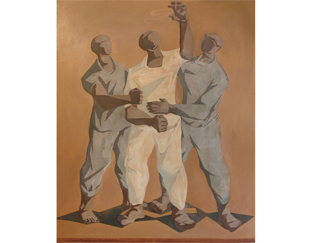 Clóvis Graciano - Figuras - OSC - 86 x 70 cm - Acid, 1954Clóvis Graciano cria aqui uma composição emblemática com figuras monumentais e volumes geométricos.