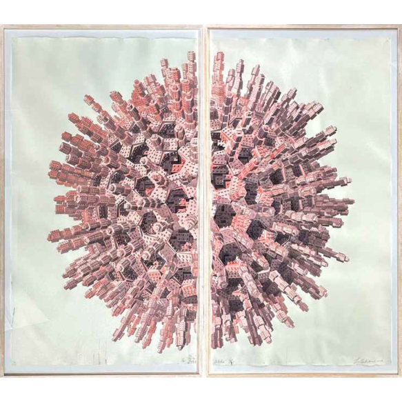 Los Carpinteros (1991) - Polen Rojo - watercolor - díptico 200 x 226 cm , 200 x 113 cm cada parte 1/2 - assinada canto inferior direito - 2016 - Com etiqueta Fortes D`Aloia & Gabriel
