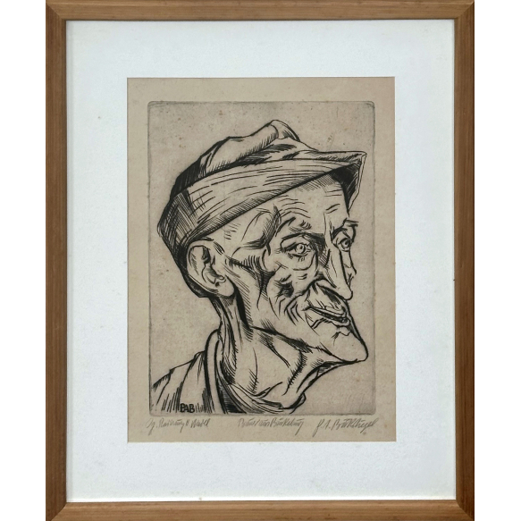 Peter August Bockstiegel (1889 - 1961) - Camponês de Buckeburg - água forte sobre papel - 44,5 x 31 (área impressa) - assinada canto inferior direito - c. 1919. Participação: Exposição Verdade - Fraternidade - Arte - Secessão de Dresden, Grupo 1919 e Contemporâneos, Museu Lasar Segall, 2011. Reprodução: página 65 do catálogo da referida mostra.