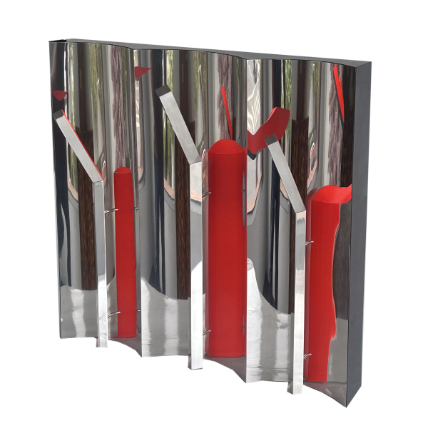 escultura em madeira revestida por fórmica e aço inoxidável, 3/1051 x 50 x 15 cmassinada no verso
