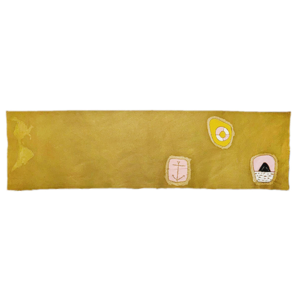 EspañolLeonilson - (1957-1993) Sem título pintura e bordado / tinta acrílica, tinta metálica e linha sobre lona 46 x 165 cm assinada no verso 1986 Registrado Projeto Leonilson, sob número PL 0963.0/00. Reprodução: Catálogo Raisonné, vol II, página 279. Participação: Exposição Leonilson arquivo e memória vivos - Espaço Cultural Unifor, Fortaleza, 2017. Exposição Leonilson arquivo e memória vivos - Fiesp SP 2019.