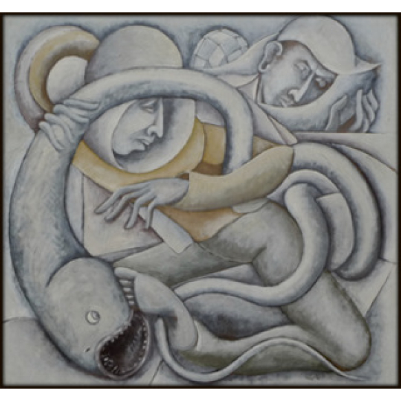 Tobias Marcier Jorge – Laocoonte - Pintura – Tempera s/cartão colado sobre madeira industrializada, assinado e datado de 1977, medindo 75 x 80 cm. Esta obra encontra-se reproduzida sob o Número 505 do catálogo Soraia Cals / Escritório deArte –Leilões datado de Novembro de 2009 – Coleção Lucien Finkelstein e outros comitentes