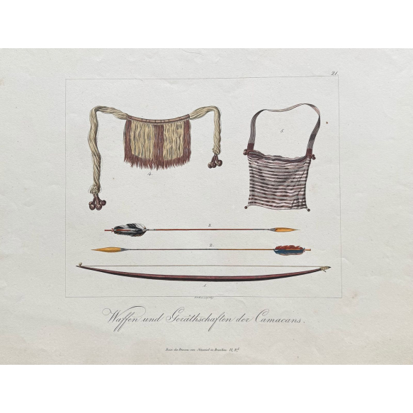 Maximilian Alexander Philipp zu Wied-Neuwied - Príncipe Wied-Neuwied Príncipe Maximiliano - Armas e utensílios dos Camacans - Gravador Johann C. Bock - Gravura em metal impressa em Munique em 1822 a partir dos originais feitos na viagem ao Brasil entre 1815 e 1817 - Medidas 32 cm x 24 cm