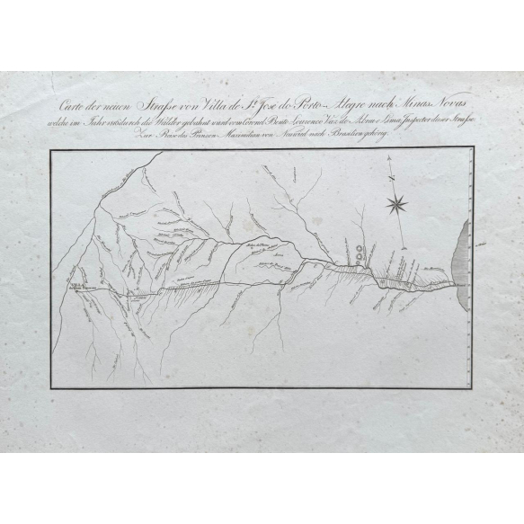 Maximilian Alexander Philipp zu Wied-Neuwied - Príncipe Wied-Neuwied Príncipe Maximiliano - Mapa da nova estrada de Villa de St. José de Porto Allègre a Minas Novas - Gravura em metal impressa em Munique em 1822 a partir dos originais feitos na viagem ao Brasil entre 1815 e 1817 - Medidas 32 cm x 24 cm