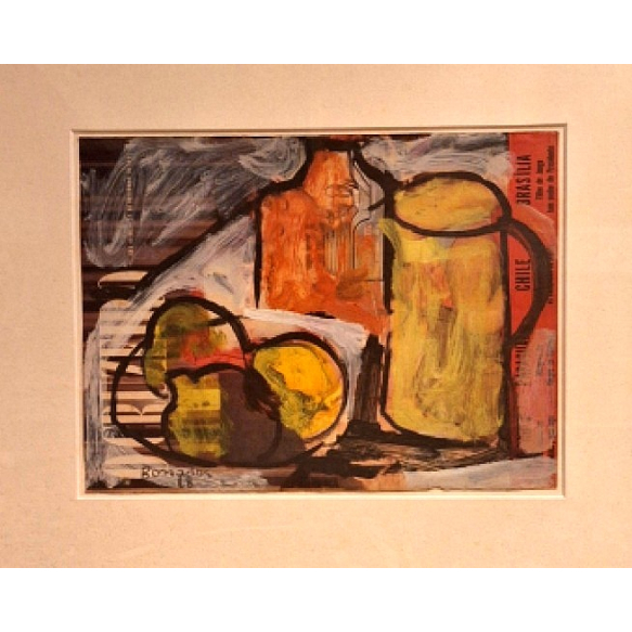 Aldo Bonadei - Guache sobre a capa da revista "O Cruzeiro" de Dezembro de 1961 - Assinado e datado de 1968 - Medidas 26 x 33 cm - Reproduzido no leilão da Bolsa de Arte de Julho de 2013