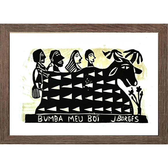 J. BORGES-Rotogravura | Título: Bumba meu Boi | Assinada na chapa: CID | Medidas: 20 x 30 cm.Esta reprodução acompanha moldura com acetato. Nota: O acetato protege a obra e substitui o vidro, evitando acidentes durante o envio.