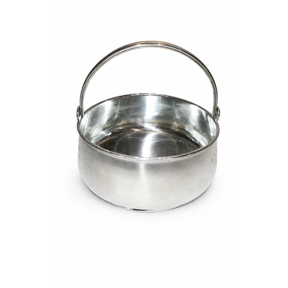 Cesta em Prata Imperial Russa – 84 Zolotnik | c. 1900 - Elegante cesta de mesa em prata de lei russa, com alça móvel, contrastada no padrão 84 zolotnik (≈ 875), utilizada no Império Russo até 1917. Peça de refinada execução, com interior espelhado e linhas sóbrias, típica da produção russa do final do século XIX / início do século XX. Origem: Império Russo - Época: c. 1880–1917 - Peso: 224 g - Medidas: Ø 11 cm | Altura 12 cm.Material: Prata 84 (875)