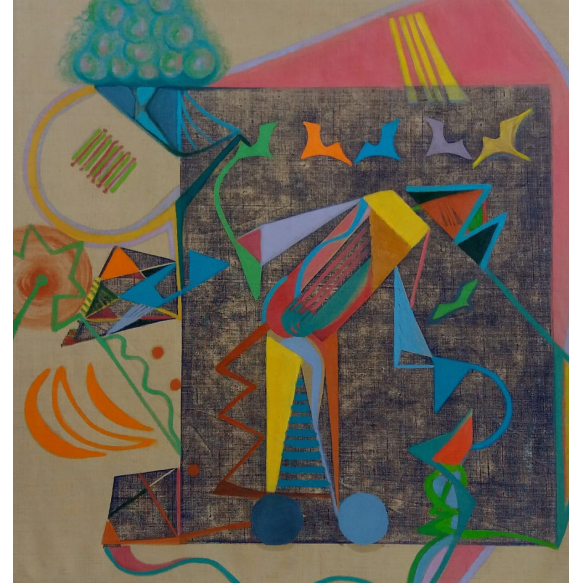 Uiara Bartira - Imprimatura em PVA, impressão em linóleo, óleo e linho - Medidas 45 x 43 cm - Assinada e datada 2023 - Participou da Exposição XIV florencebienalle 2023 - Itália