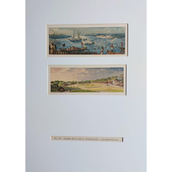 EspañolJEAN BAPTISTE DEBRET (1768-1848) - PASSO RICO DE S. GONZALEZ - GUARAPUÁVA - Fototipia (impressão planográfica, semelhante à litografia) colorida inteiramente à mão (au pochoir) - Medidas 58 x 39 cm - Edição 271/400 - PL 73 - Executada em papel d"Arches a partir das aquarelas que não figuraram no livro “Voyage pittoresque et historique au Brésil”, editado por Firmin Didot Frères em 1834, 1835 e 1839. Organizadas e realizadas por iniciativa de Raymundo Ottoni de Castro Maya com as aquarelas de sua coleção. A impressão foi iniciada e 1953 e terminada em 1955. Executada em Paris por Louis Duval, mestre impressor, sob a direção de Marcel Mouillot, nas oficinas de Maurice Beaufume e assistido por Reine Juge. Obs. As placas que serviram para esta edição foram destruídas