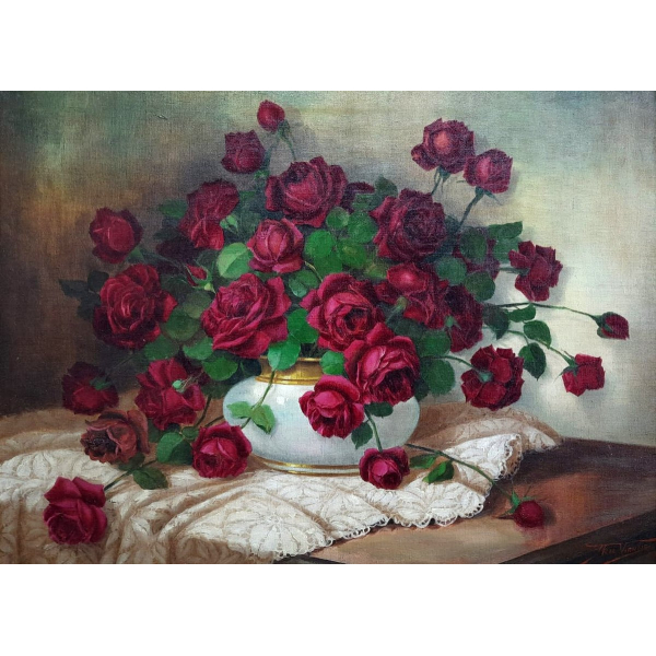 Di Cavalcanti - A musa apaixonada e a margarida - 72 x 59 cm - Óleo sobre tela - Assinatura canto inferior direito - Data 1956 - Ano que o artista participa da XXVIII Bienal de Veneza e Ganhou uma sala Especial na Bienal Interamericana do México, recebendo Medalha de Ouro - Obra reproduzida na Revista Visão em 1960 - Acompanha certificado de autenticidade da Almeida e Dale - Proveniente de uma das maiores pinacotecas de arte moderna do Brasil.