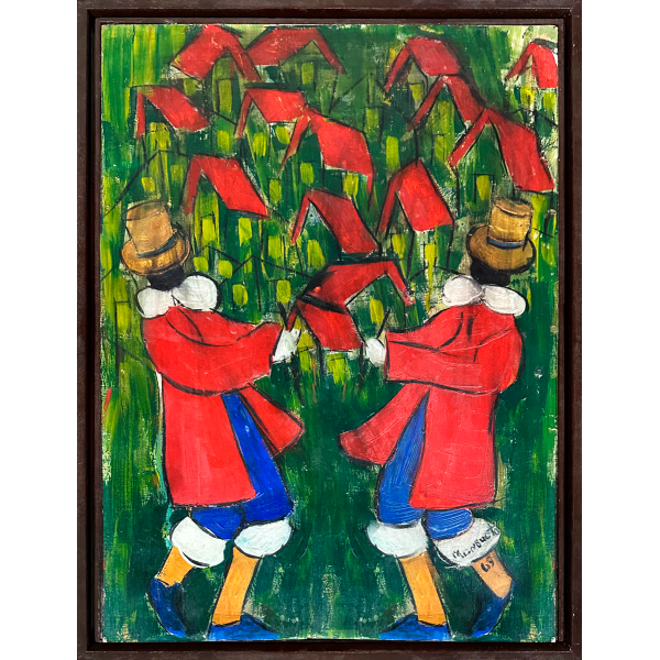 Di Cavalcanti - A musa apaixonada e a margarida - 72 x 59 cm - Óleo sobre tela - Assinatura canto inferior direito - Data 1956 - Ano que o artista participa da XXVIII Bienal de Veneza e Ganhou uma sala Especial na Bienal Interamericana do México, recebendo Medalha de Ouro - Obra reproduzida na Revista Visão em 1960 - Acompanha certificado de autenticidade da Almeida e Dale - Proveniente de uma das maiores pinacotecas de arte moderna do Brasil.