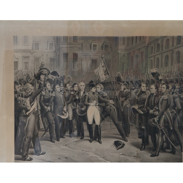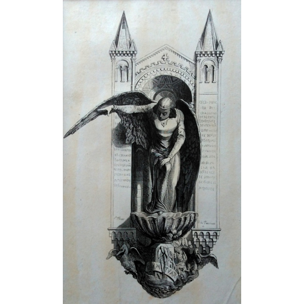 AUBUSSON - Belíssima tapeçaria representando paisagem, assinada na borda A-B acompanhada da flor de lis.