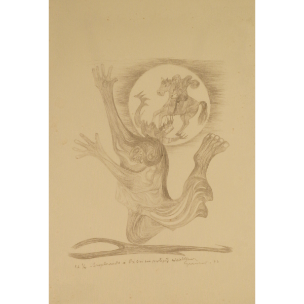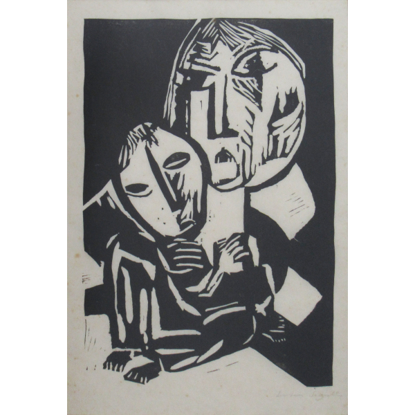 Bruno Giorgi - São Francisco e o lobo de Gubbio - 100 x 80 cm - Têmpera sobre tela - Assinatura canto inferior direito e Data década de 40 - Fase que o artista convivia diariamente com o Mestre colorista Alfredo Volpi.