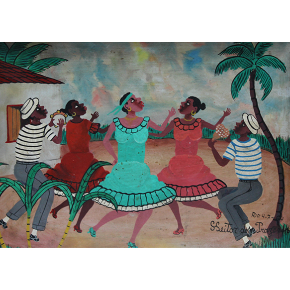Heitor dos Prazeres - Samba no quintal - Óleo sobre placa - 31 alt x 41 larg (cm) - acid - 1964