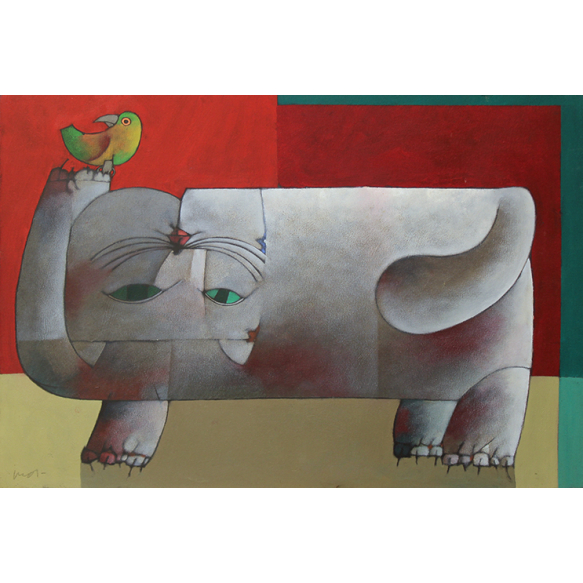 Inos Corradin - Fábio, meu gato siberiano e o papagaio - Óleo sobre tela - 50 alt x 70 larg (cm) - acie e verso