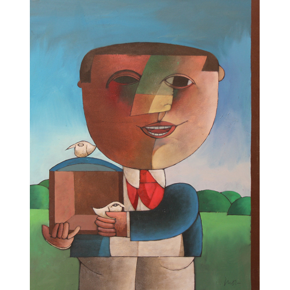 Inos Corradin - O caçador ecológico - Óleo sobre tela - 80 alt x 60 larg (cm) - acid e verso