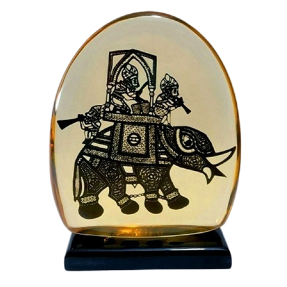 Abraham Palatnik - Escultura cinética representando placa com elefante indiano - Resina - 17 alt x 13 larg (cm)