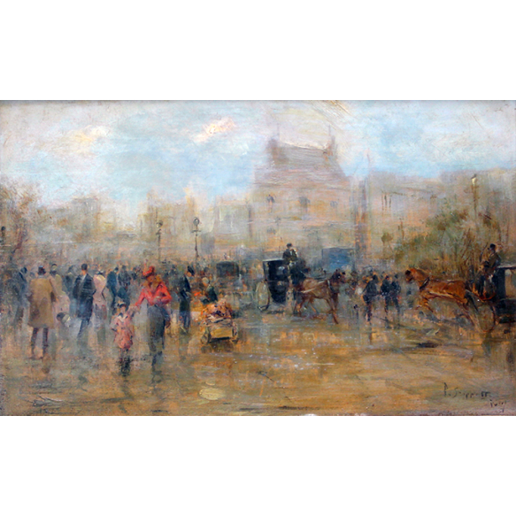 Pietro Scoppetta - Cena urbana - Óleo sobre Madeira - 27 alt x 41 larg (cm) - acid -