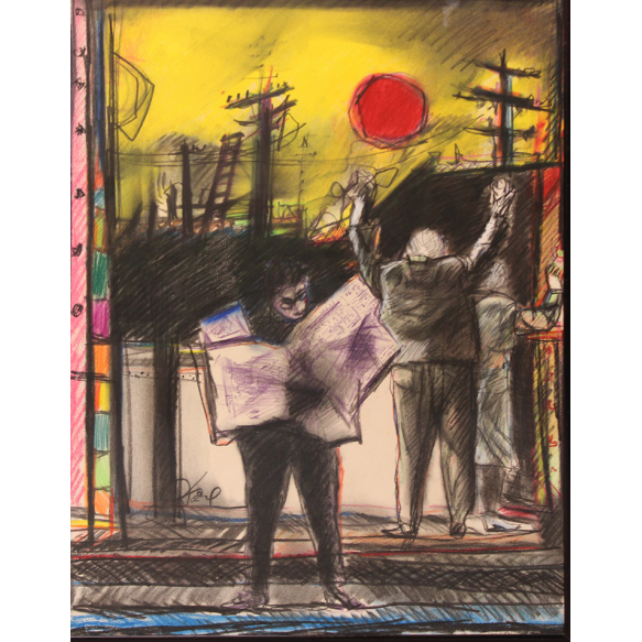 Darel Valença Lins - Um dia Qualquer - Técnica mista sobre papel - 80 alt x 60 larg (cm) - acie