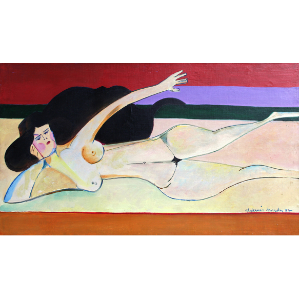 Aldemir Martins - Nu Feminino - Acrílica sobre tela - 27 alt x 46 larg (cm) - acid e verso - 1977 - Acompanha certificado emitido pelo estúdio Aldemir Martins e reproduzida no livro: "Aldemir Martins por Aldemir Martins BEST PONT" sob página 182.