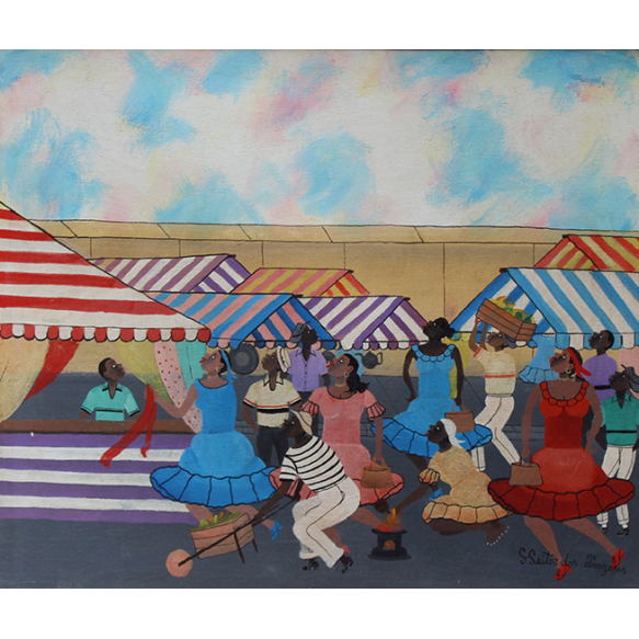 Heitor dos Prazeres - Feira - Óleo sobre tela - 50 alt x 61 larg (cm) - acid - Com certificado emitido pelo filho do Artista