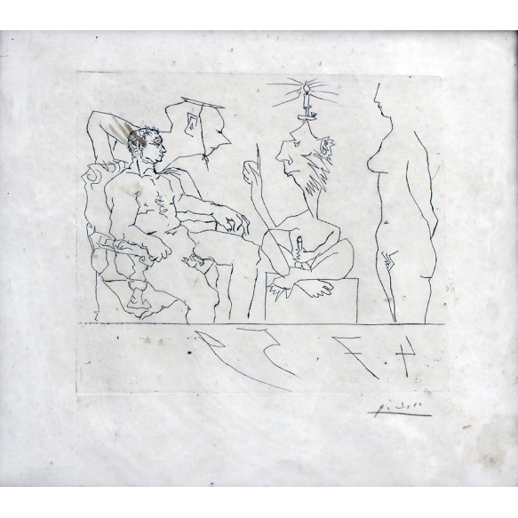 Pablo Picasso - Philosophe discourant devant un notable, avec femme nue à droite - Gravura Metal - 35 alt x 36 larg (cm) - acid - 36/50