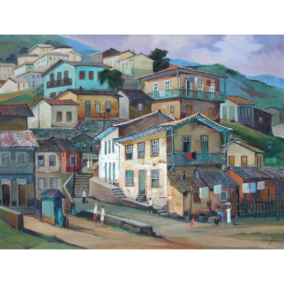 Omar Pellegatta - Casario e figuras - Óleo sobre tela - 80 alt x 100 larg (cm) - acid