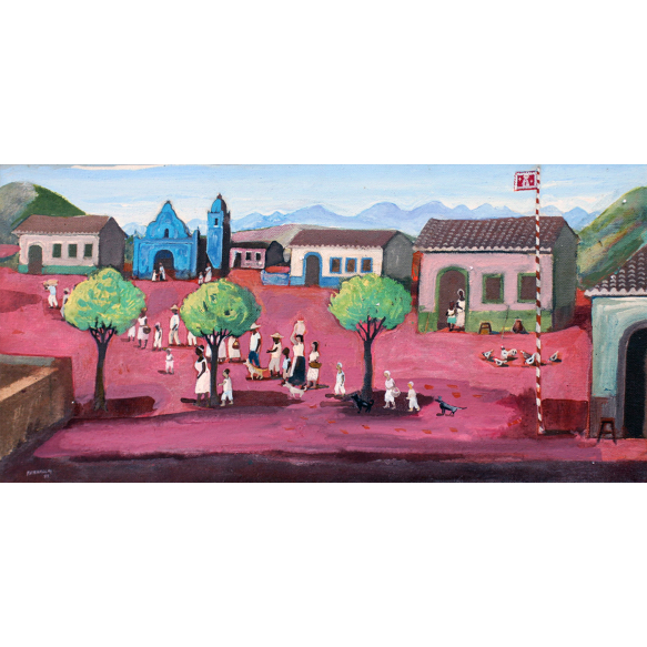 Fúlvio Pennacchi - Capela Azul - Óleo sobre tela - 35 alt x 70 larg (cm) - acid - 1977 - Acompanha certificado emitido pelo próprio artista e selo da Galeria Oscar Seraphico no verso.