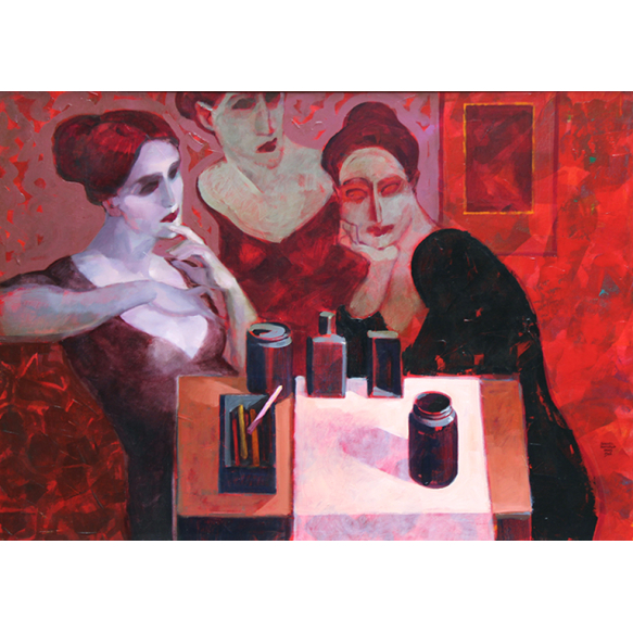Juarez Machado - Mulheres em Vermelho - Óleo Sobre tela - 70 alt x 100 larg (cm) - acid e verso - 1988