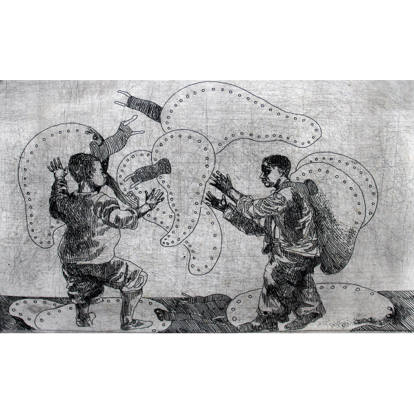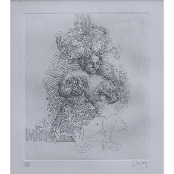 Escultura em bronze com detalhes em marfim17 x 20 cmass. na peça