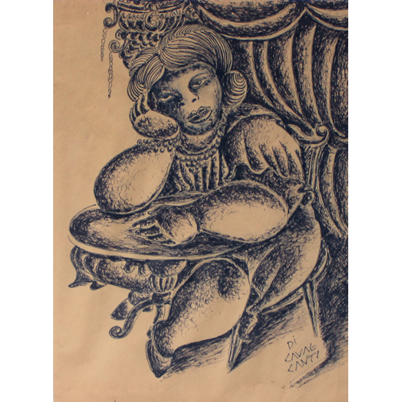 EspañolEmiliano Di Cavalcanti - Figura Feminina - Nanquim sobre papel - 29 alt x 21 larg - acid
