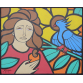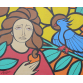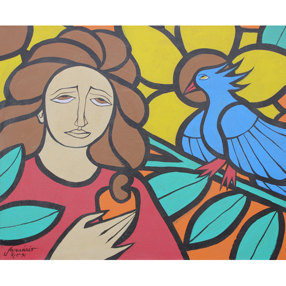 EspañolSebastião Januário - Figura feminina com pássaro azul - Óleo sobre tela - 50alt x 61 larg - acie - 1991