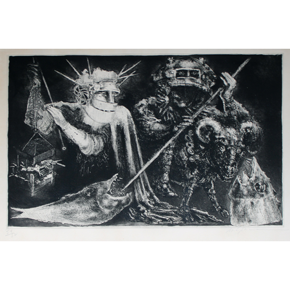 EspañolMarcelo Grassmann - Guerreiros - Gravura Metal - 45 alt x 63 larg (cm) - acid - 34/50