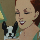 Belmonte - Mulher com cachorro - Guache sobre papel - Assinado canto inferior direito - 26 x 23 cm.