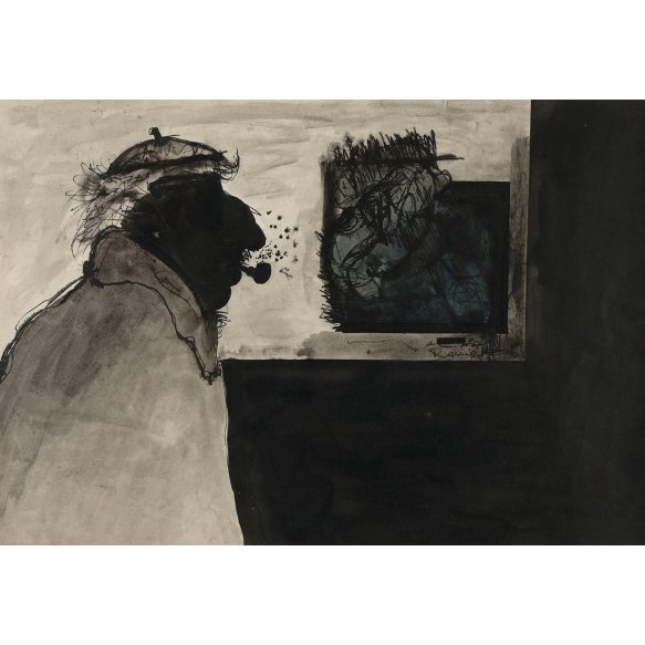 Artur Barrio - Mº 67 - 1973 - Nanquim e aquarela sobre papel - Assinado meio à direita - 35 x 50 cm.