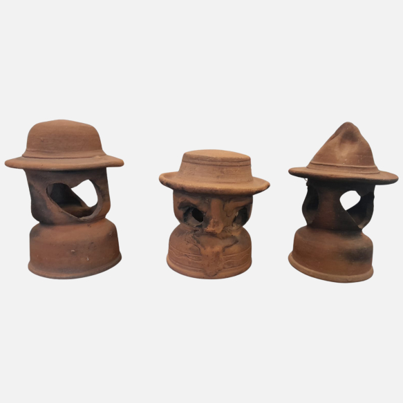 Antônio Poteiro - Lote completo por 3 lamparinas – Escultura em terracota – déc. 70 - Assinada - I: 26 x ø20 cm; II: 22 x ø20 cm; III: 29 x ø20 cm.