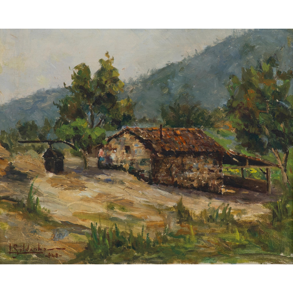 Ignácio Saldanha - Paisagem rural com casa de campo - 1948 - Óleo sobre tela - Assinado canto inferior esquerdo - 33 x 40 cm.