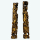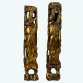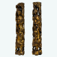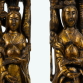 Imponente par de esculturas representando figuras com flores de lótus em madeira ricamente entalhada e brunida a folha de ouro. China, séc. XIX. Dimensões: 44 x 8 x 6 cm cada.