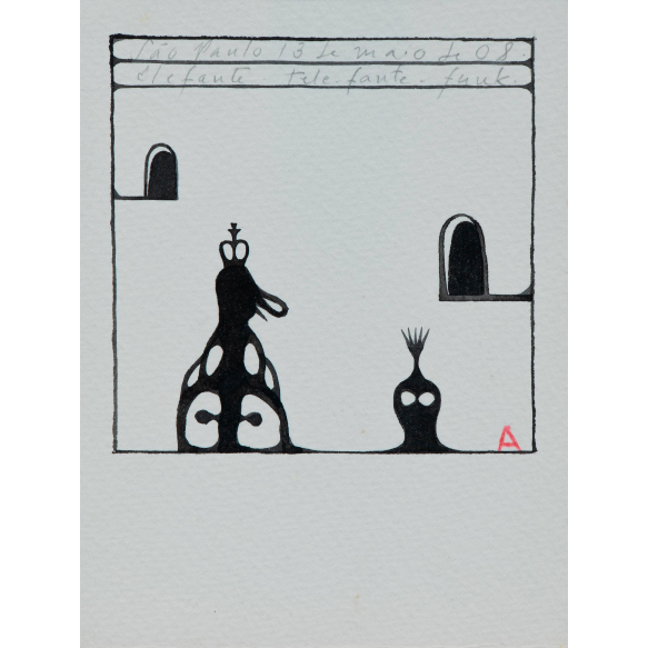 Alex Cerveny - Elefante tele-fante - 2008 - Nanquim sobre cartão - Assinado canto inferior direito - 18 x 14 cm.