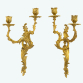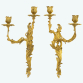 Par de arandelas estilo Luis XV em bronze ormolu ricamente entalhadas e vazadas decoradas com motivos vegetalistas para 2 velas cada. França, séc. XIX. Dimensões: 40 x 25 x 11 cm cada.