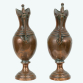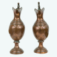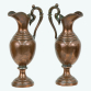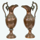 Par de pequenos jarros para “santos óleos”, produzidos em metal cobre com decoração rocaille. França, séc. XIX. Dimensões: 16 cm.