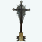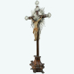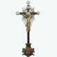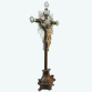 Belíssimo crucifixo brasileiro em jacarandá com a imagem do crucificado em madeira patinada, belamente entalhada. Ponteiras e adereços em prata ricamente lavrada e burilada. Rio de Janeiro, Brasil, séc. XVIII. Dimensões: 86 x 40 x 10 cm.