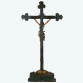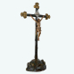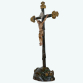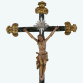 Mestre Piranga - Grande crucifixo com Cristo em madeira nobre, ricamente esculpido, com ornamentação em prata de lei. Minas Gerais, séc. XVIII. Em excepcional estado de conservação. Peça de coleção. Dimensões: 85 x 45 x 15 cm.