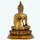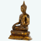 Buda "Earth touching Buddha", escultura em bronze lacado a folha de ouro. A figura está representada sentada, de pernas cruzadas e mão direita a tocar a terra, mudra "Bhumisparsha". Tailândia, séc. XIX. Dimensões: 23 x 17 x 10 cm.