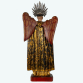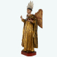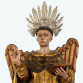 SÃO VICENTE FERRER. Raríssima imagem do Santo representado com asas. Escultura em madeira, de fino lavor artístico. Na iconografia cristã são pouquíssimos os santos homens que recebem essa distinção na sua representação. De fato, ela é utilizada para dois santos dominicanos: São Tomás de Aquino, o Doutor Angélico e São Vicente Ferrer o anunciador do apocalipse. São Vicente Ferrer foi um dos santos que mais trabalhou pela conversão dos judeus e dos muçulmanos. Alguns historiadores chegam a afirmar que converteu cerca de 25.000 judeus e mais de 8.000 islamitas. Por ocasião do Domingo de Ramos de 1407, estando ele em pregação na igreja de Ecija, Espanha, uma mulher judia, cheia de riquezas e poder, foi assistir os sermões de São Vicente para manifestar sarcasmos. Por fim, ela atravessou no meio do povo para ir embora. Todos os presentes ficaram indignados. Mas São Vicente disse bem alto: "Deixai-a sair, porém afastai-vos do pórtico". O povo obedeceu. Quando a mulher passou sob o pórtico, este caiu sobre ela, e ela faleceu. São Vicente caminhou até o corpo da mulher e ordenou com voz forte e poderosa: "Mulher, em nome de Jesus Cristo, volte à vida!" E a mulher ressuscitou. Todos ficaram maravilhados. Após o milagre, a senhora se converteu ao catolicismo. Todos os anos, em Ecija, uma procissão comemorava o extraordinário fato da morte e conversão da mulher judia. (Com resplendor de metal espessurado a prata que acompanha a imagem). Proveniente da Antiga coleção do Dr. Celso Álvares. Minas Gerais, Brasil, séc. XVIII. Dimensões: 75 x 36 x 21 cm (Resplendor: 13 cm).