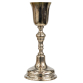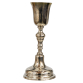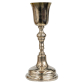 Raro cálice litúrgico em prata com interior em vermeil, trabalho do século XVIII, copo liso, fuste em balaústres repuxada e base circular alteada. Sem marcas. Bahia, Salvador, trabalho do final do séc. XVIII. Peso bruto: 395 gramas. Dimensões: 26 x ø11 cm.