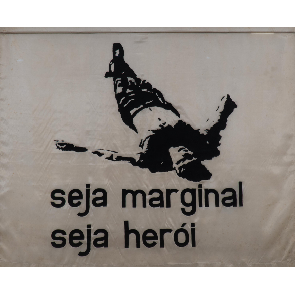 Hélio Oiticica - Seja Marginal, Seja Herói - 1986 - Serigrafia impressa sobre tecido off-white - 33/250 - Assinado por Lygia Pape e Luciano Figueiredo - 95 x 115 cm.