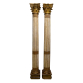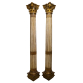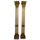 Imponente par de grandes colunas coríntias em carvalho entalhado, pintado e dourado, capitéis decorados com folhas de acanto e enrolamentos. Fustes com decoração torsa de escamas e de enrolamentos vegetalistas entalhados. Bases de formato quadrangular rematadas por frisos de godrões. Brasil, séc. XVIII. Dimensões: 280 x 38 x 38 cm.