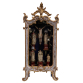 Belíssimo oratório, dito "lapinha", barroco, brasileiro, policromado. Apresenta conjunto de imagens de devoção, em pedra sabão, Minas Gerais do século XVIII. Dimensões: 47 x 22 x 9 cm.