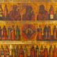 Importante ícone russo religioso ortodoxo com pintura sobre placa de madeira representando a “Virgem e todos os santos” e “cenas bíblicas”. Rússia, séc. XVIII. Dimensões: 44 x 39 x 4 cm.